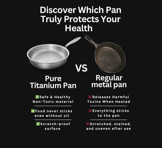 The Pure Titanium Pan™ is made from 100% medical-grade titanium, completely non-toxic, chemical-free, and safe for everyday cooking.No coatings. No stickiness. No scratches. Just pure, worry-free cooking.